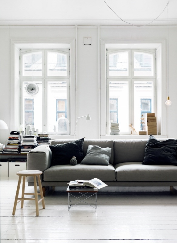 Right now, I’m really loving the crisp, modern look of gray at home. Our apartment more toward the classic neutrals, brown, black and white, but there’s something so refreshing and grown-up about gray. I love the idea of dove gray wall or a dark gray couch — a good masculine/feminine compromise that feels ultra grown up.