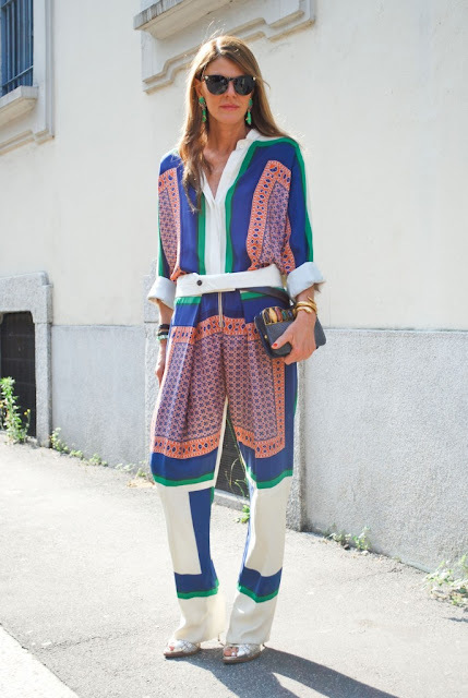 If you’re still not sure about the whole rolling out of bed look (even if it’s a super luxe bed), you can always break up the PJ set and pair a pajama top with piping or in a print with tailored pants or skinnies.
